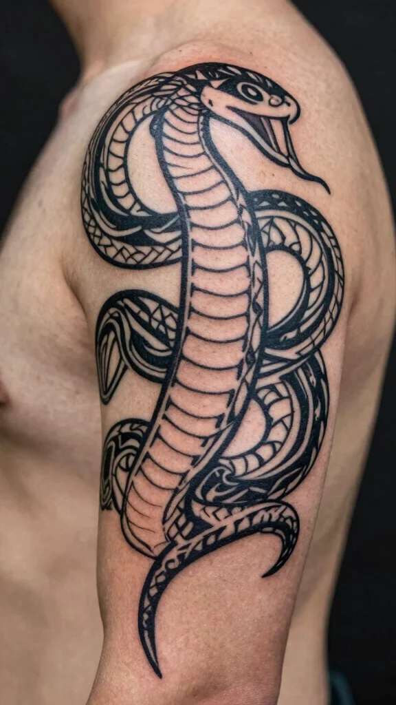 Tribal snake tattoos carry deep cultural meanings and historical significance. Characterized by bold black lines and geometric shapes, these designs resonate with those who appreciate tradition and heritage. Often symbolizing strength and protection, tribal tattoos connect wearers to their ancestral roots.