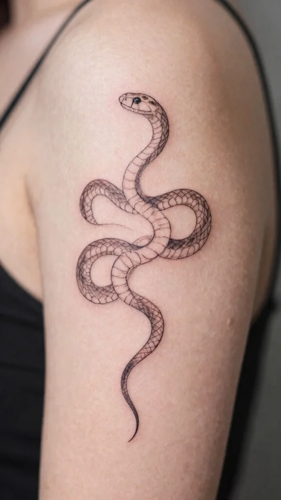 Minimalist snake tattoos emphasize simplicity and elegance, perfect for those who appreciate understated designs. Featuring clean lines and basic forms, these tattoos convey profound meanings without excessive detail. This style appeals to modern sensibilities, where the idea of ‘less is more’ reigns.