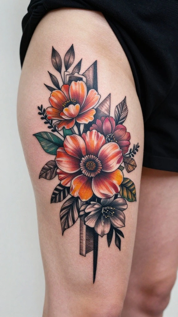 Using contrasting colors between floral and geometric elements can elevate the visual appeal, making your tattoo a standout piece of art. You can mix different shapes and colors to create a design that truly reflects you.
