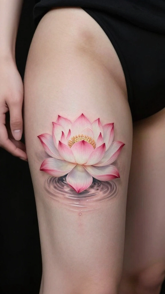 The lotus flower holds deep meanings of purity and rebirth, making it a powerful choice for body art. A thigh tattoo featuring lotus blossoms symbolizes personal growth and transformation, offering a beautiful narrative on your skin. Imagine delicate designs cascading down your thigh, with waves or ripples representing water, enhancing tranquility. This design speaks to those who wish to express their journey while keeping a feminine aesthetic.