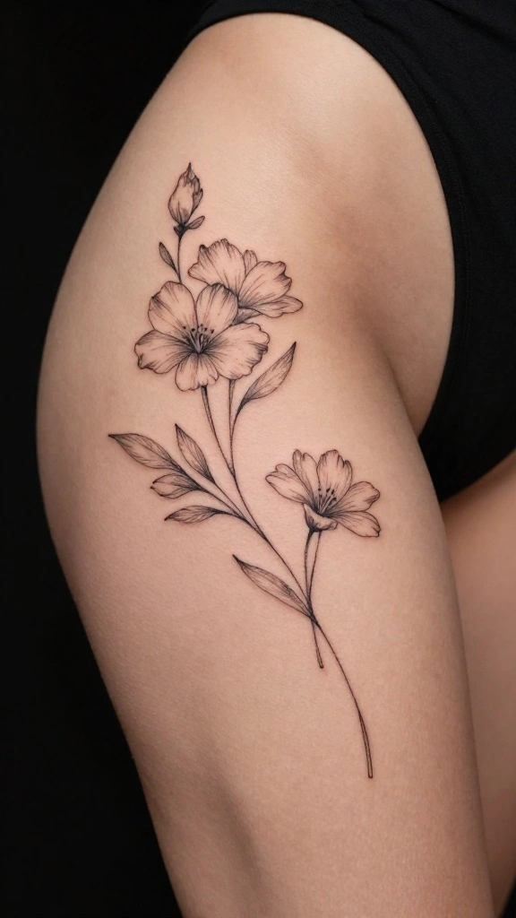 For those who appreciate minimalism, floral line art tattoos offer a stunning yet subtle option. These designs often use simple lines to create beautiful flower shapes, making them both elegant and striking. A big thigh tattoo can feature a single flower or an abstract arrangement, allowing for personal expression without overwhelming detail. This style is perfect for anyone seeking grace in their body art.