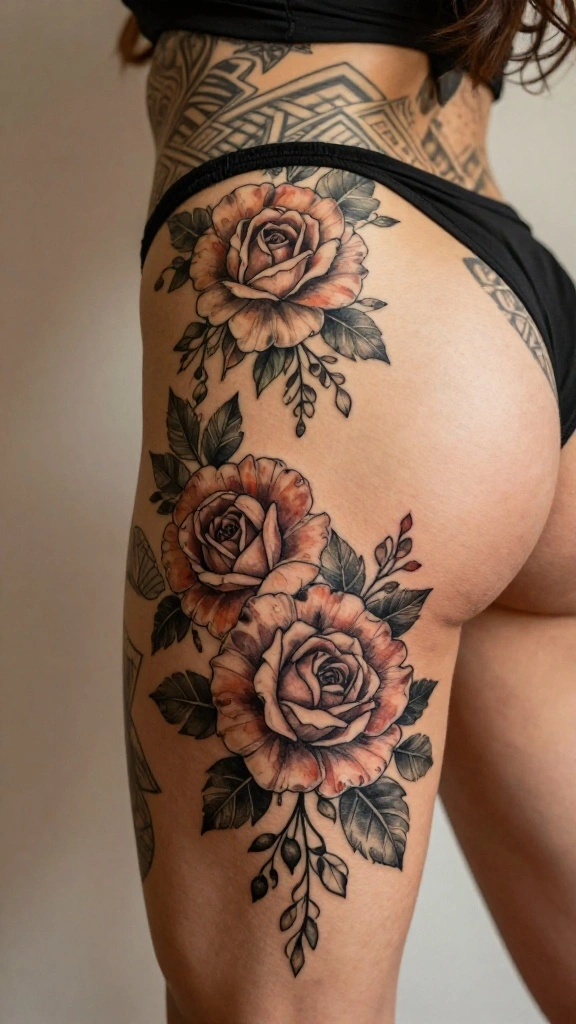 What are the most popular floral big thigh tattoo designs for women?