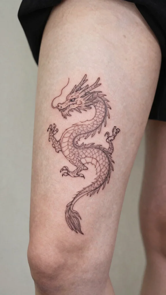 If you prefer a more understated approach, a minimalist dragon tattoo is a chic option that still packs a punch. These designs typically feature clean lines and small, delicate illustrations that capture the essence of a dragon without overwhelming detail. The minimalist style can convey strength and resilience in a subtle yet profound way. The thigh serves as an excellent canvas, allowing the design to be easily hidden or displayed as you choose.