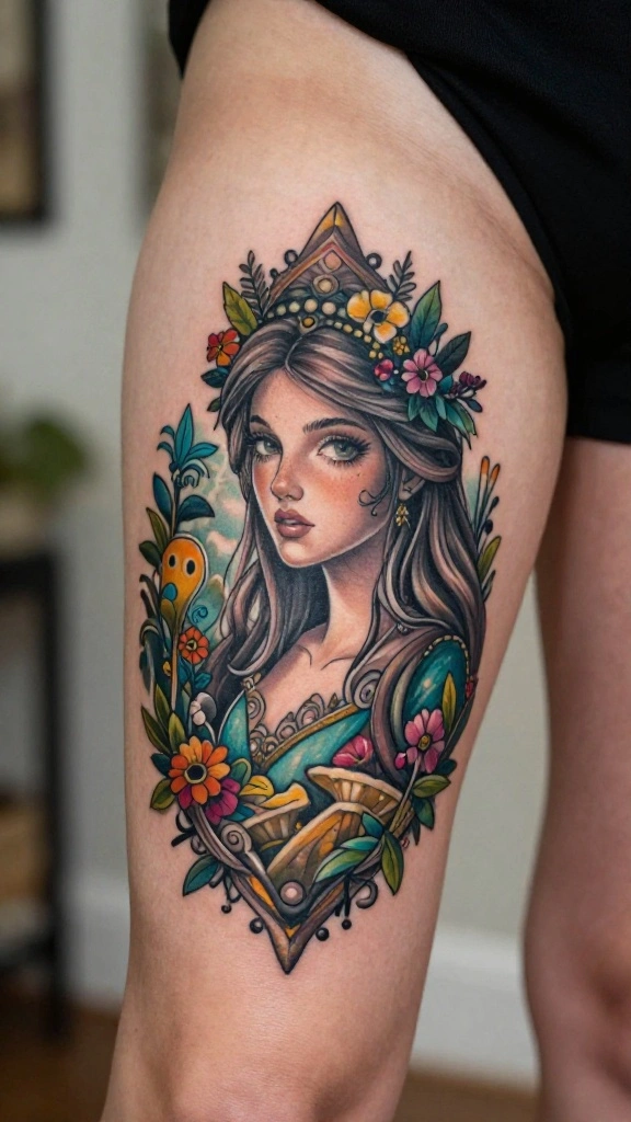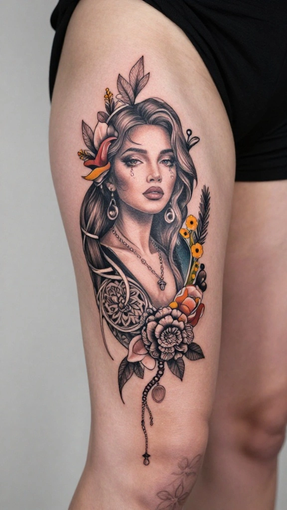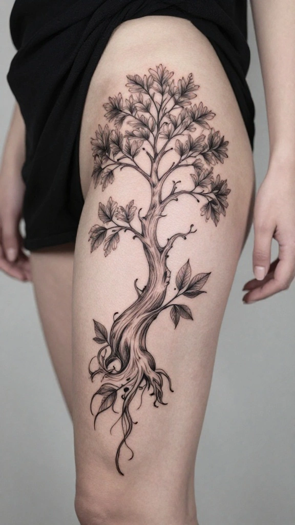 Artistic illustrations can transform your thigh into a canvas filled with storytelling. These tattoos can encompass anything from whimsical fairy tales to beautiful natural scenes. The ample space on your thigh allows for larger artworks that reflect your passions and interests.
