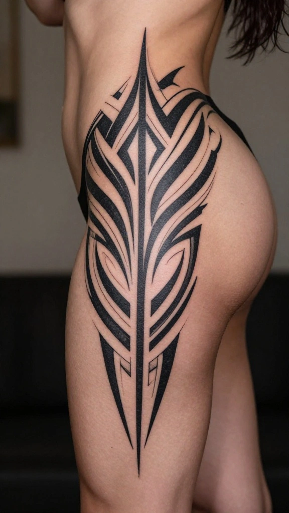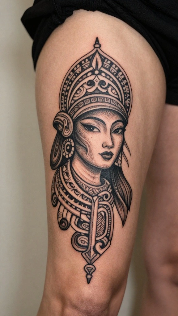 Cultural tattoos celebrate your heritage and identity through meaningful symbols. These designs often reflect rich histories and can carry deep significance. Placing these designs on your thigh allows for larger, intricate tattoos that tell a meaningful story.