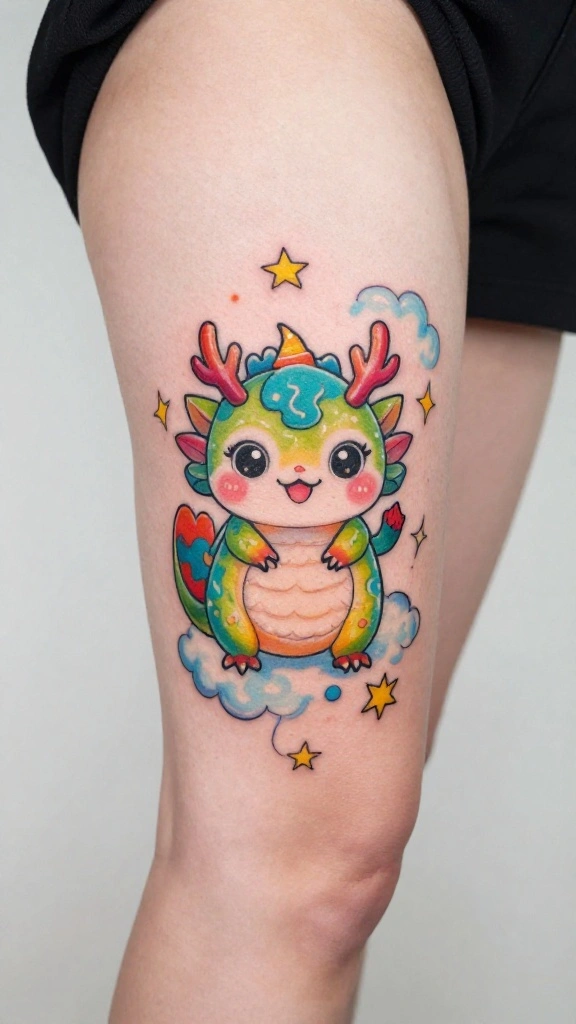 Choosing bright colors and fun shapes enhances the whimsical feel of your design, adding vibrancy to your tattoo. Mixing different playful elements can create a personalized piece that reflects your creativity.