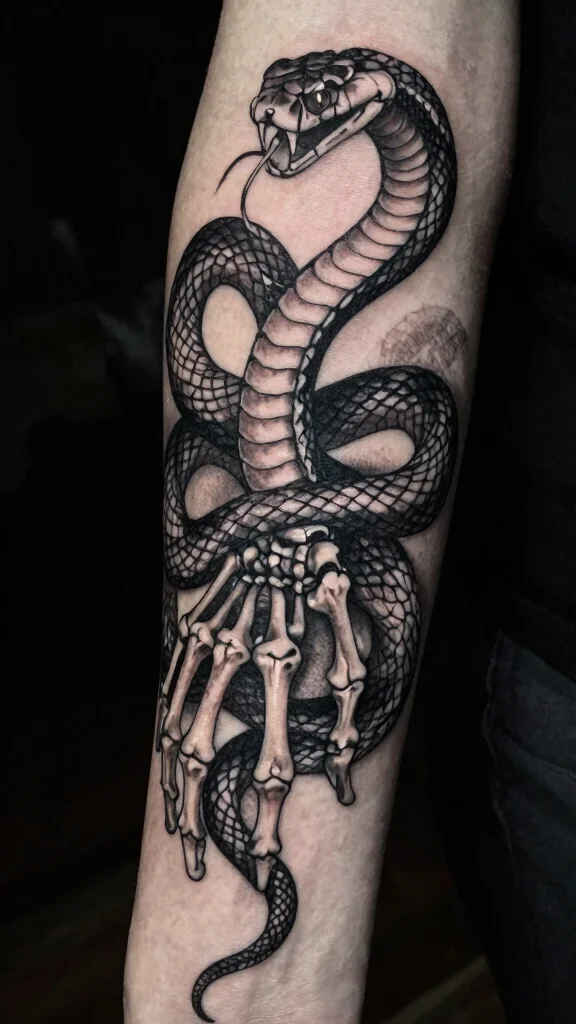 Skeletal snake tattoos offer a striking choice that blends beauty with a hint of the macabre. These designs highlight the skeleton of the snake, often showcasing its curves in a minimalist manner. A skeletal tattoo can symbolize transformation, mortality, and resilience, creating a thought-provoking visual.