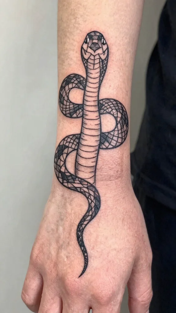 A geometric snake tattoo is a captivating blend of art and symbolism, making it a standout choice.
