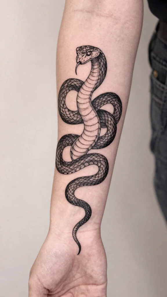 An intricately detailed snake tattoo becomes a personal masterpiece that reflects both beauty and artistry.