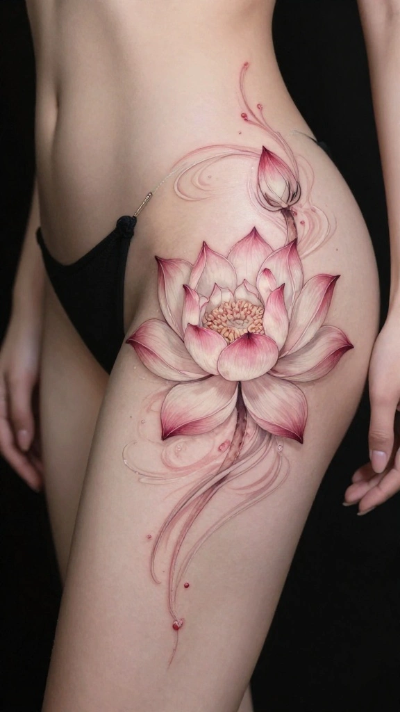 The lotus flower is a powerful symbol of purity and rebirth, making it a stunning choice for a hip thigh tattoo. This flower can be designed in various styles, allowing for a personal touch that reflects your journey.