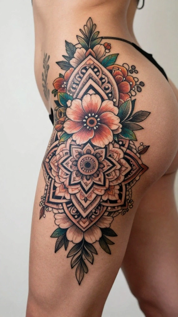 Hip thigh tattoos offer a sexy placement for floral details and more. Popular ideas include floral designs like roses and peonies, delicate vines wrapping around the hip, and feminine mandalas. For hip thigh tattoos women, choose a design that flows with your natural curves and decide whether you want a statement piece or something discreet. Start with a stencil to test placement, then adjust scale and shading for your body. If you want more coverage, go for a wrap-around piece that spans the hip to the outer thigh.