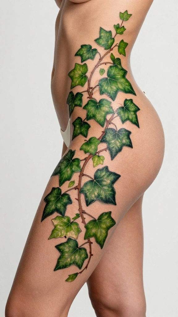 Choosing ivy represents growth and perseverance, reflecting your personal journey beautifully. This design can be subtle or bold, depending on your preferences for size and complexity.