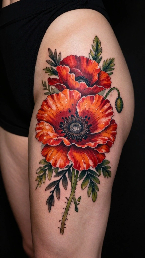 Choosing poppies allows you to symbolize peace and serenity, adding depth to your tattoo. You can opt for rich colors and intricate shapes to make your design stand out.