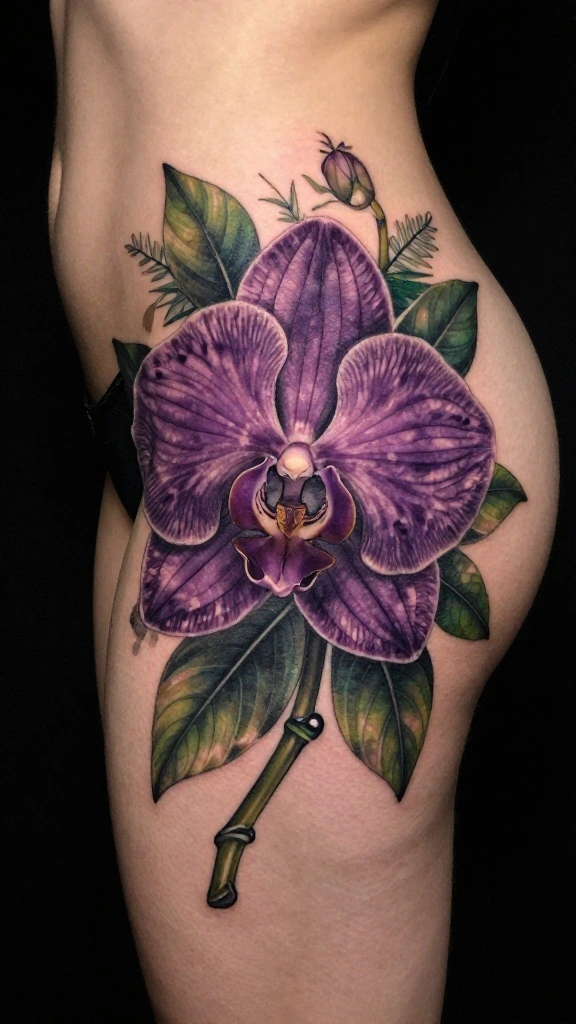 For a striking effect, consider a single large orchid, or opt for multiple smaller ones for a more intricate design. Placing the orchids at an angle can mimic their natural growth and add a dynamic feel to the tattoo.