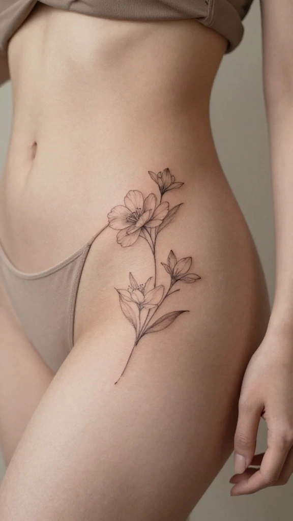 – Discover 20 unique hip thigh tattoo ideas, focusing on feminine floral designs that enhance your body art collection.
