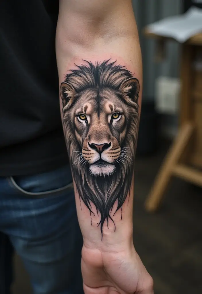 You want a bold inner forearm tattoo that speaks without shouting. A lion tattoo fits this goal. It signals courage, strength, and a natural leader vibe. The inner forearm is a public canvas you can show off or cover as needed.