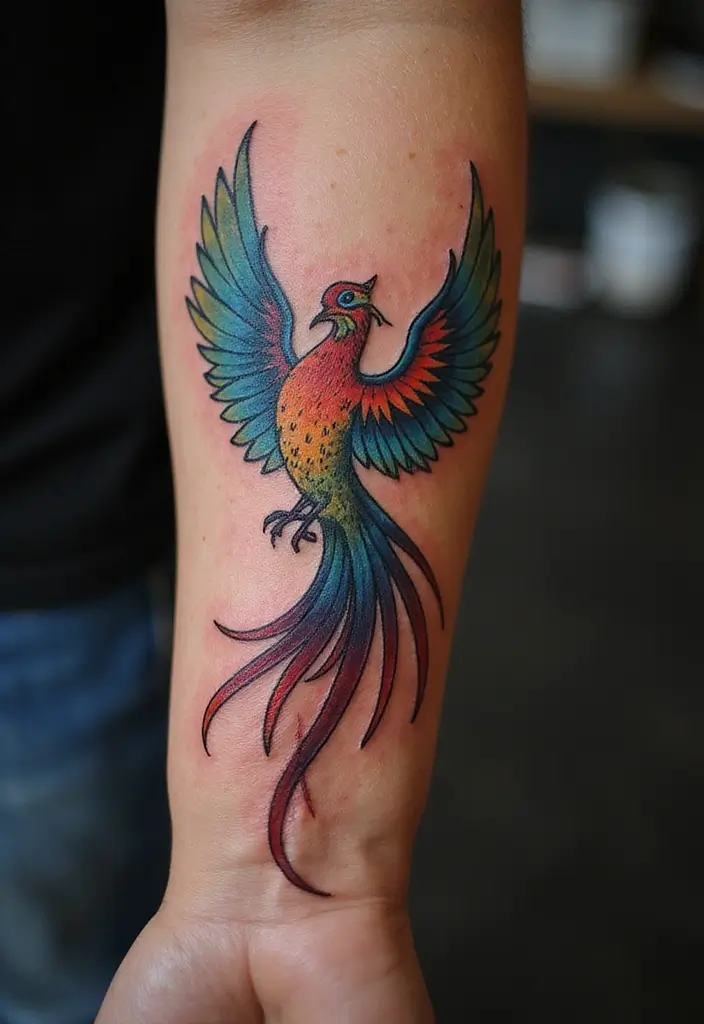 Here is why a phoenix rising fits an inner forearm tattoo. It stands for rebirth and grit. You can show how you rose after a hard time. The image uses fire colors like crimson, gold, and orange. Big wings sweep along your arm, and the feathers invite a closer look. Simple lines can make the glow feel real. You will feel the ink tell your story every day.
