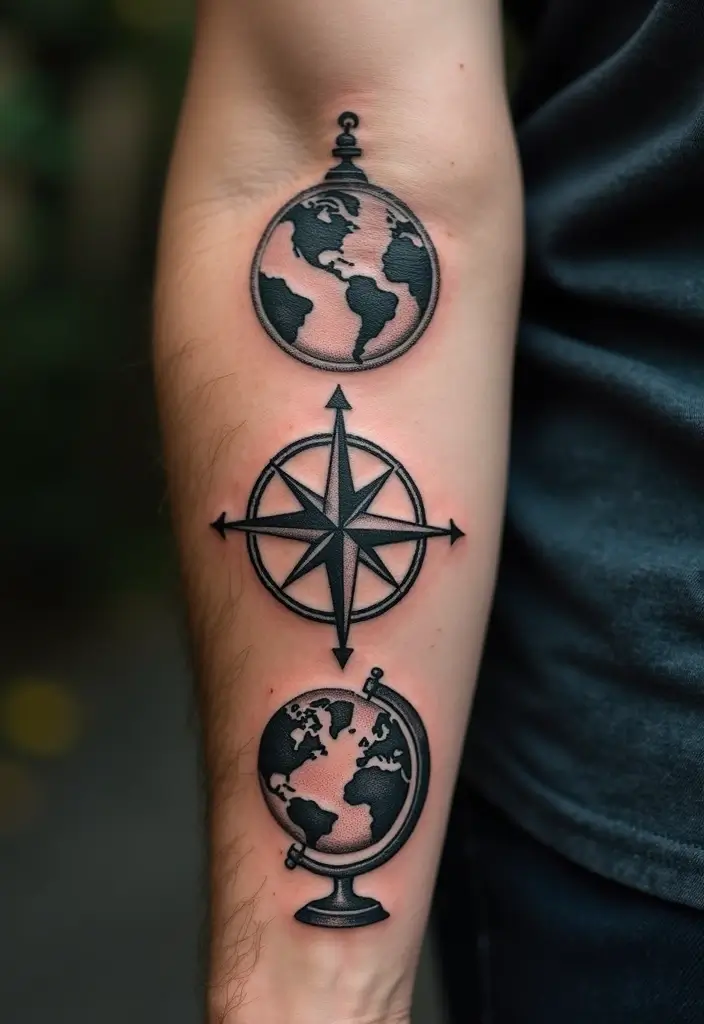 Travel tattoos tap into your love for exploration. They tell a story without words. The inner forearm is a strong spot. It’s visible to you, easy to view, and easy to cover when needed.