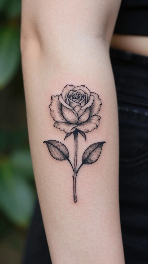 – Delicate Rose Outline: This classic design offers a simple yet elegant look, perfect for showcasing your love for traditional beauty in a subtle way.