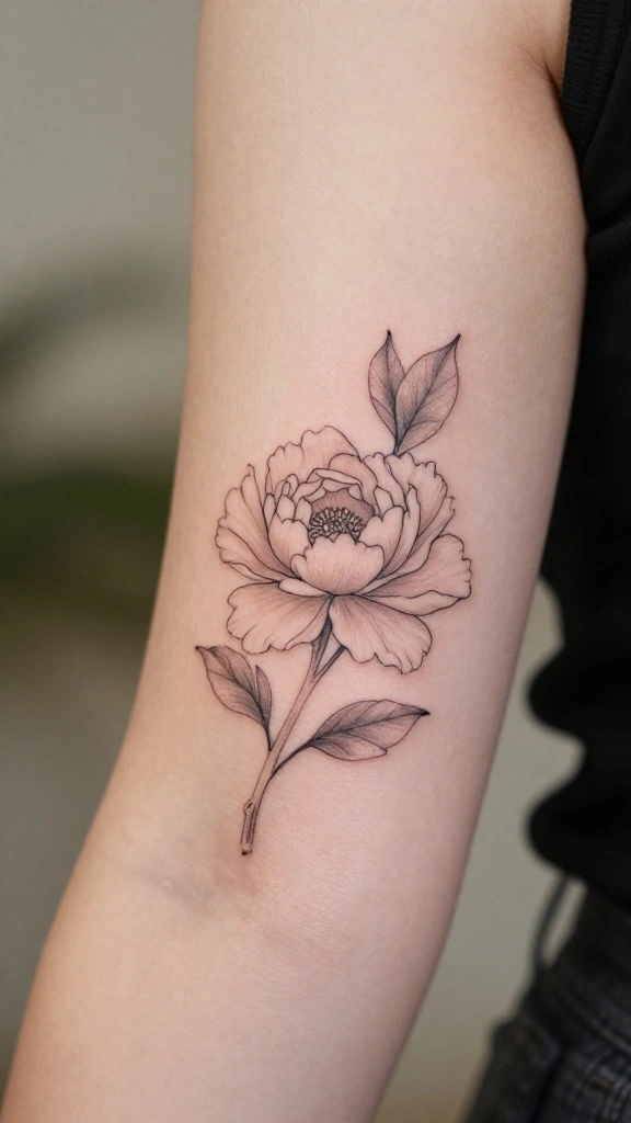 A minimalist peony tattoo captures the flower’s beauty in an elegant and subtle way. Peonies symbolize romance and prosperity, making them a lovely choice for your lower thigh. The design can feature clean lines or soft shading to highlight the flower’s shape.