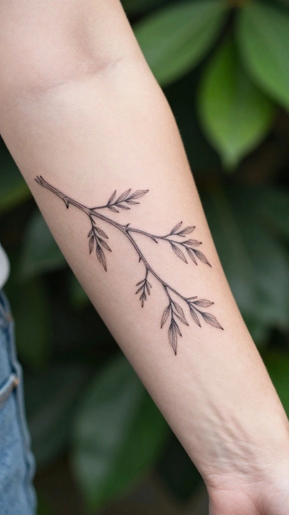 A minimalist tree branch tattoo elegantly symbolizes strength and stability. Its simplicity makes it a subtle yet striking choice for your lower thigh. You can choose a bare branch or one adorned with small leaves or blossoms, depending on your style.