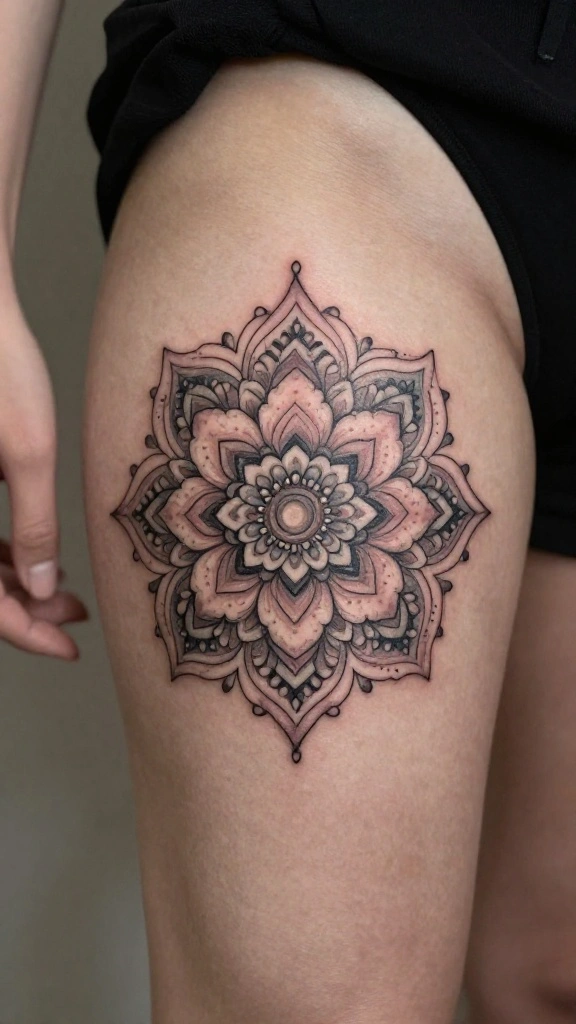 The detailed patterns can capture attention without overwhelming your skin, while the circular shapes enhance the natural curves of your thigh. Choose a color palette that resonates with you, ranging from bold tones to soft neutrals.