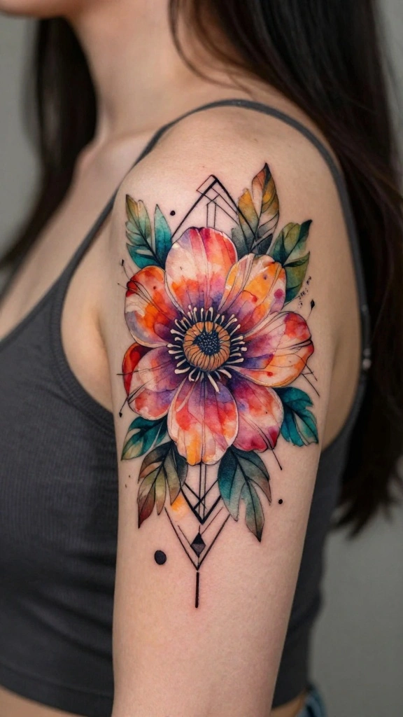 Merge the softness of flowers with the sharp lines of geometry for a modern twist on traditional floral tattoos. A geometric floral design can incorporate shapes like triangles or circles that harmoniously interact with floral elements, creating an eye-catching composition.