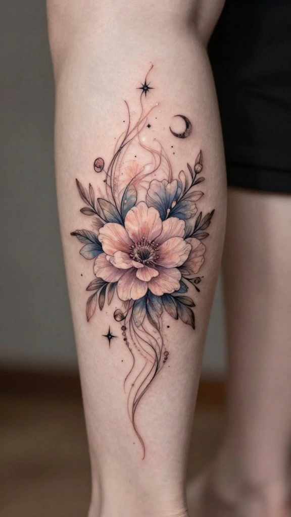 A fairy tale-inspired tattoo allows for creativity, as you can blend your favorite flowers with ethereal colors and whimsical elements. Soft pastels or swirling patterns can give your tattoo a storybook quality that draws the eye.