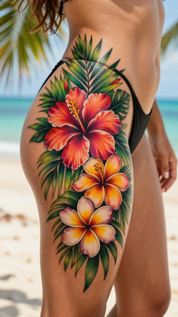 Whether you’re drawn to the elegance of roses or the playful vibe of tropical blooms, there’s a perfect mid thigh tattoo waiting for you. Don’t hesitate to embrace your beauty and allow your body art to tell your story!