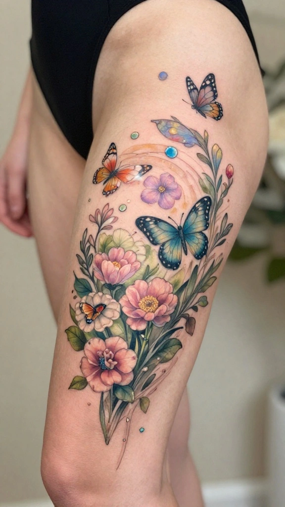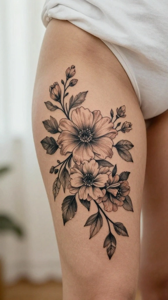 Mid thigh tattoos offer a fantastic opportunity for women to express their creativity and individuality, especially through floral designs. Each idea shared in this list presents a unique way to celebrate beauty, femininity, and personal stories through body art.