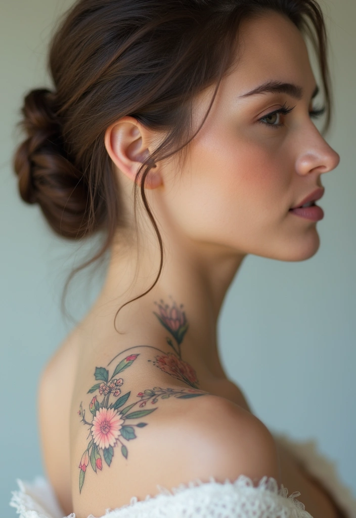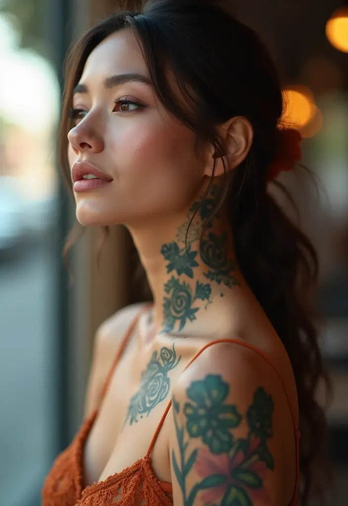 From dainty florals to sharp lettering and geometric lines, these ideas cover different vibes. You can imagine the soft rise of skin with ink that catches light when you tilt your head. Think about color versus black ink, and how a side neck piece can peek out under a collar.