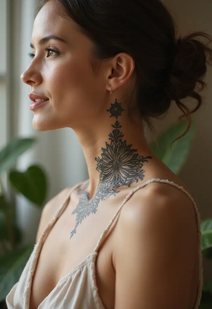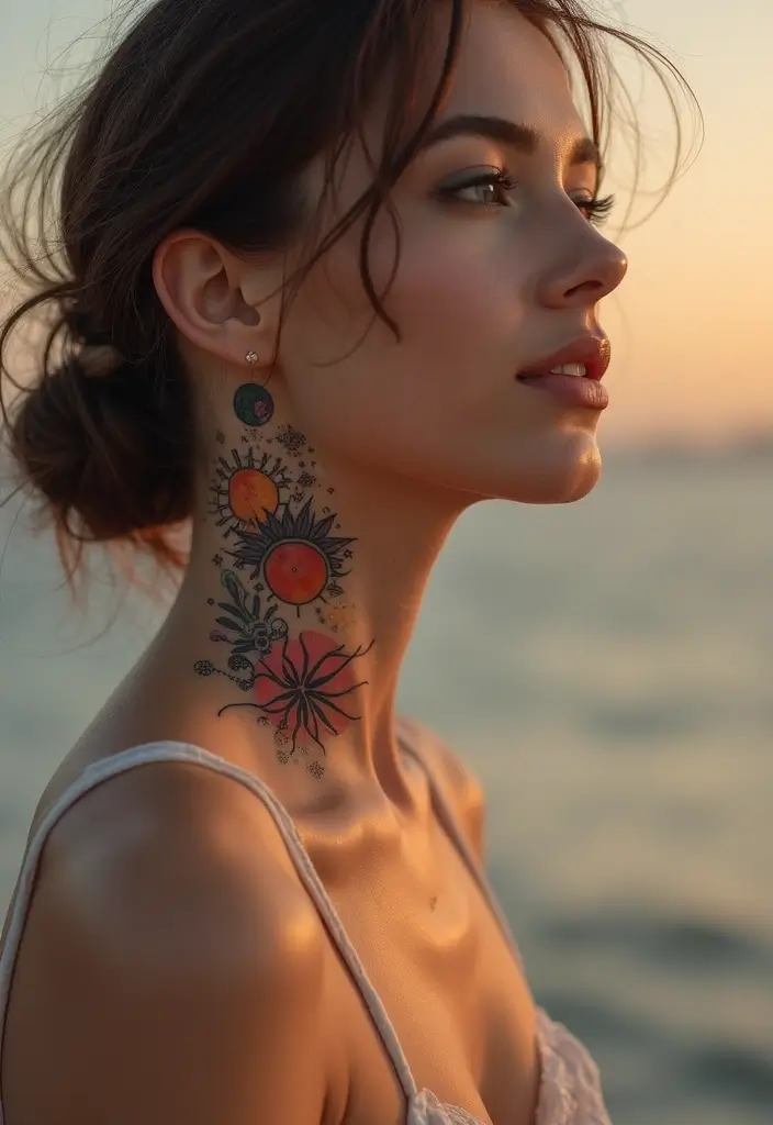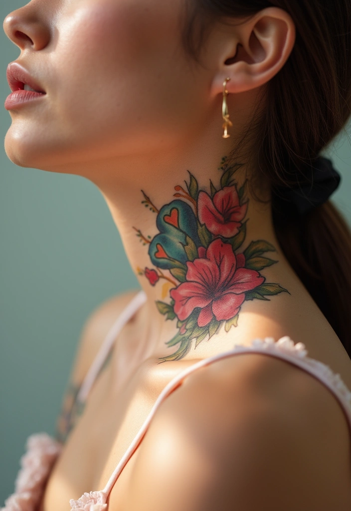 Care and practicality. Choose durable inks and a reputable artist. Neck skin heals fast but needs time to settle. Protect the area from sun and clean gently in the first weeks.