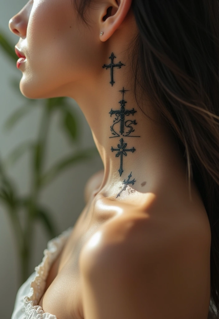 Start with a paper stencil or a temporary tattoo to see how it sits on your neck. Consider your hair length, neckline, and how visible you want the design to be. Ask for a small test piece first and talk about aftercare.