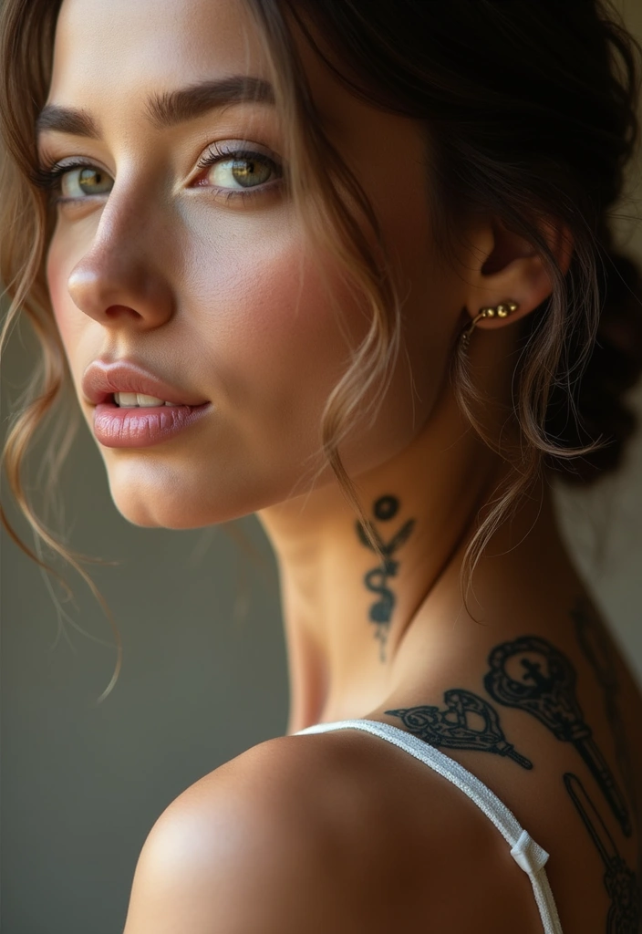Want a neck tattoo that feels timeless and current? A vintage key design might be just right. It stands for unlocking ideas, saved memories, or a path that matters to you. You can go big or keep it small. You can mix lines with shade, or keep it crisp as a simple outline. Here is why this idea works: it stays readable, ages well, and looks classy on many skin tones.