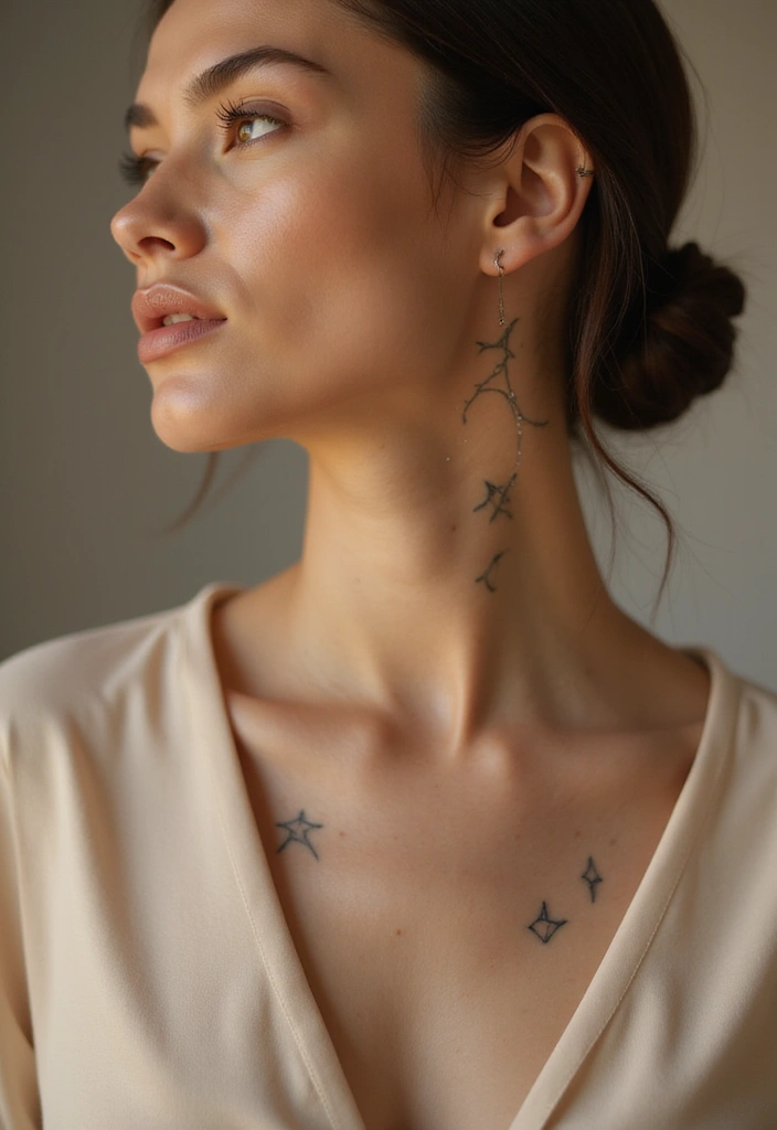 – Placement and composition: let the neck curve guide the design. A side placement along the collarbone reads chic; a cluster near the base feels intimate.