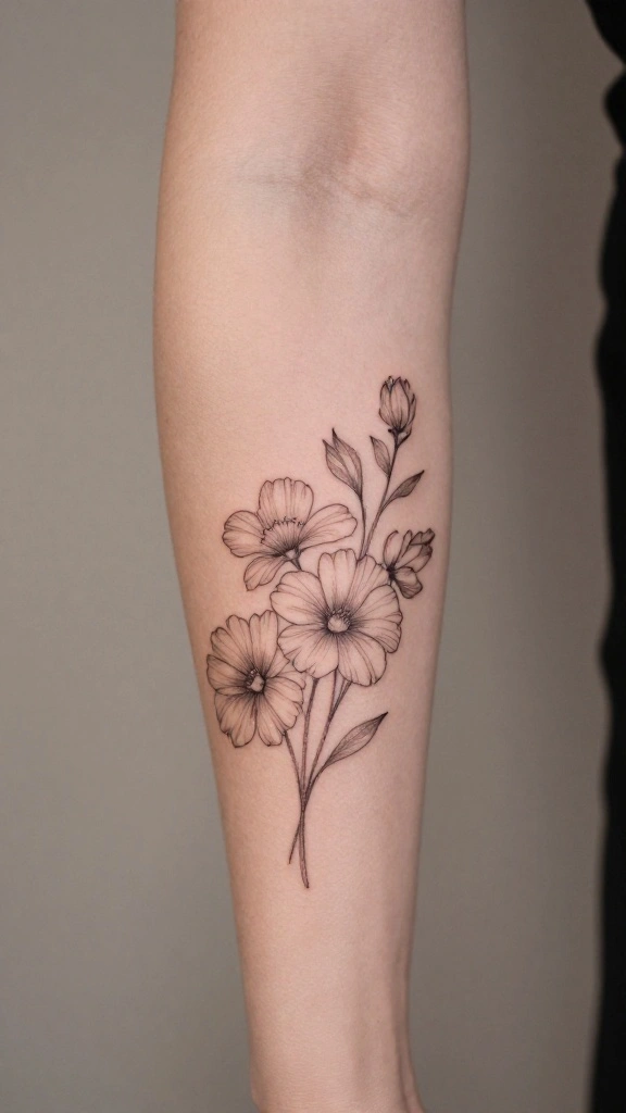 The beauty lies in simplicity; utilizing fine line work can create delicate flower outlines that are both modern and timeless. Choose simple flower designs like daisies or an abstract bouquet representation.