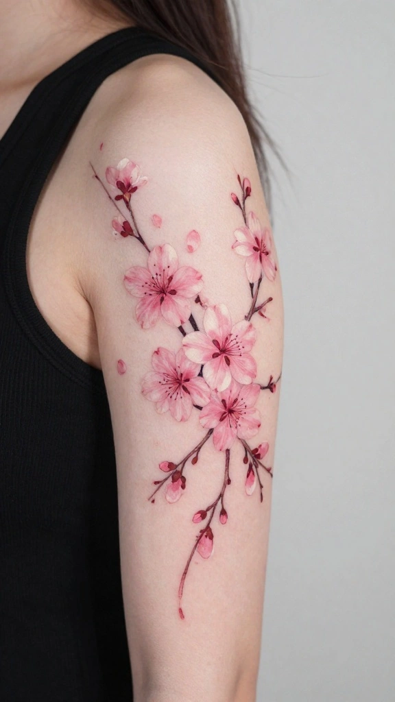 Cherry blossoms are not only stunning but also symbolize the fleeting nature of life, making them a poignant tattoo choice. A whimsical cherry blossom tattoo on your outer thigh captures the essence of spring and renewal. This design typically features delicate pink and white blossoms scattered gracefully, creating a tranquil atmosphere.