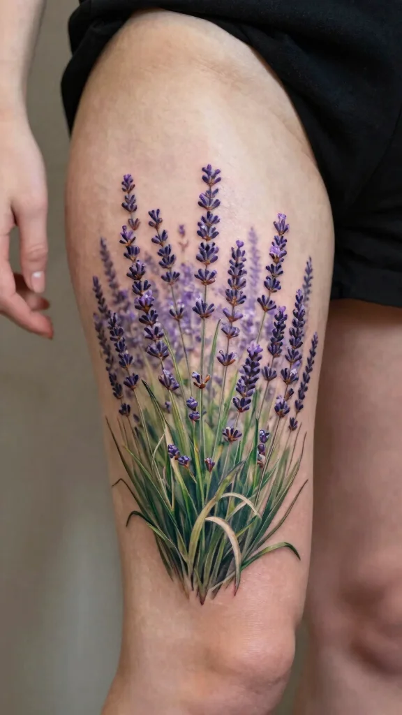 Bring a sense of serenity to your body art with an enchanting lavender field tattoo. Lavender symbolizes peace and calm, making this design perfect for individuals who value tranquility. The tattoo can feature sprawling lavender plants in varying heights, capturing the essence of a lush field under soft sunlight.