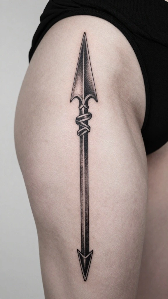 Spearhead tattoos symbolize strength and warrior spirit in Polynesian culture. This powerful design is perfect for women wanting to showcase their resilience and independence. Placed on the thigh, the spearhead can be crafted in various styles, allowing for creativity while maintaining cultural significance.