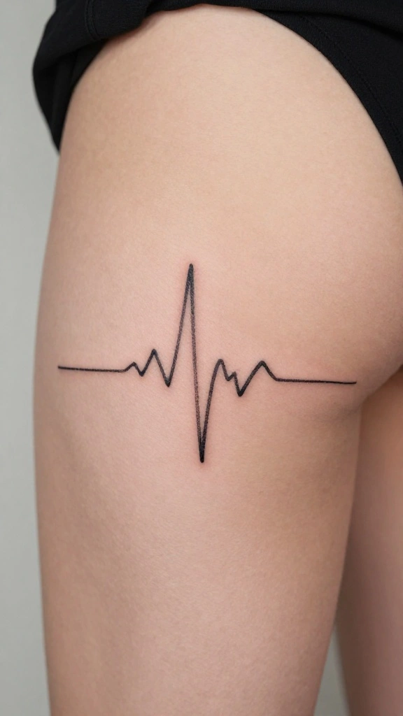 Heartbeat lines symbolize life and vitality, ideal for women celebrating love and family. This design can elegantly flow along your thigh, accentuating your body’s natural lines. Many women find this tattoo beautifully represents connections with family or loved ones.