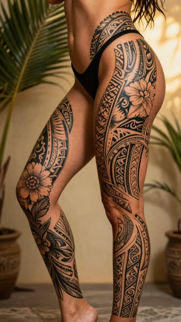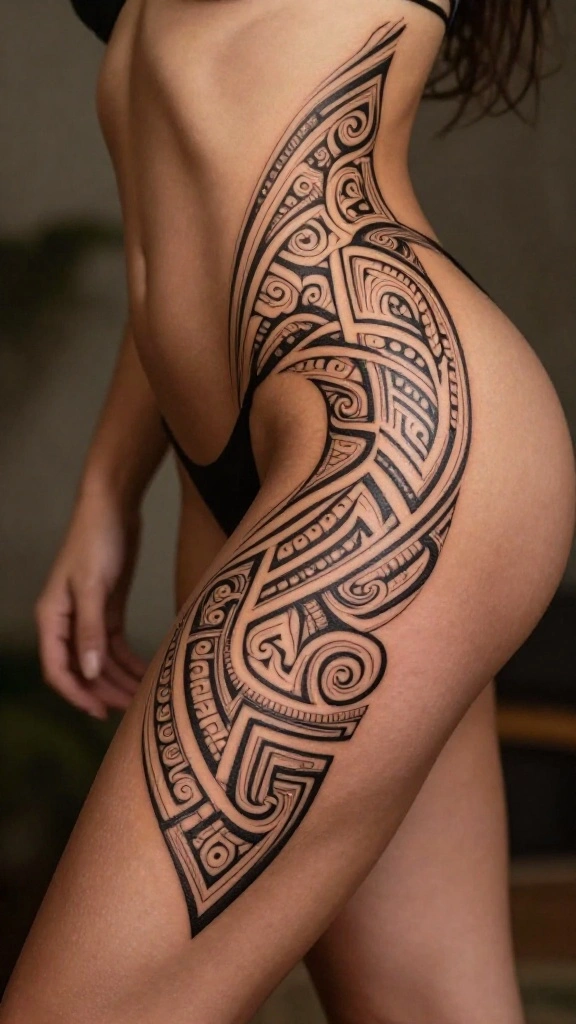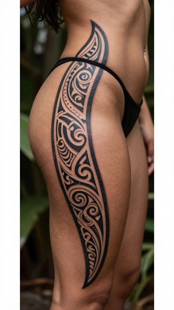 Polynesian tattoos for women on the thigh often tell a story of heritage, protection, and personal strength. For polynesian tattoos women thigh, designs are chosen to flow with the leg’s natural curves and reflect a personal journey. Popular patterns include koru (spiral of growth), tiki figures, waves and ocean motifs, shark tooth shapes, and geometric bands that wrap along the thigh. When planning a thigh piece, consider how these elements will harmonize with your shape to achieve women’s thigh tattoo designs that feel both cultural and elegant.