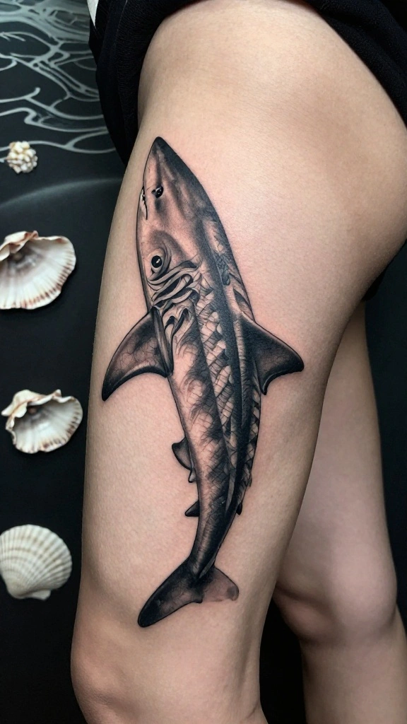 In Polynesian mythology, the hammerhead shark symbolizes strength and guidance, making it a powerful tattoo choice. This design can be a bold statement piece on your thigh, showcasing intricate details that reflect your love for marine life. Women drawn to the ocean often find this tattoo particularly meaningful.