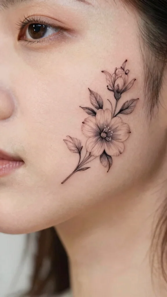 Tiny floral designs prove that less really is more— for small face tattoos for women, a gentle rose or daisy can mark growth and grace without shouting. Choose a flower with personal meaning, and let your facial art tell your story.