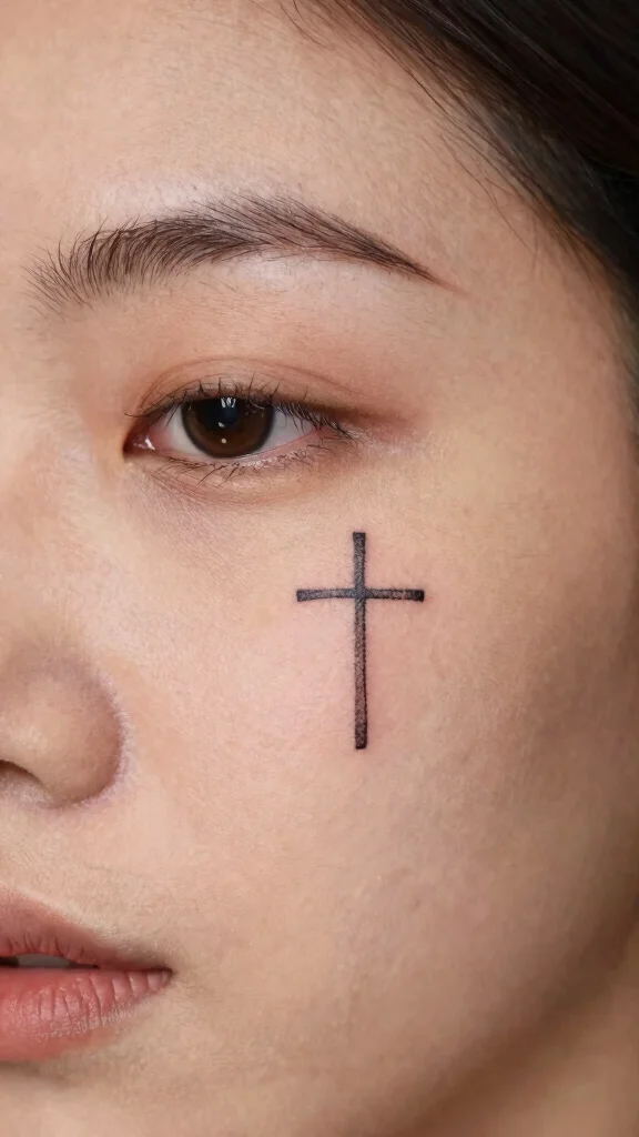Cross tattoos are powerful symbols of faith and spirituality. A small cross tattoo on your face can convey strong beliefs in a bold yet subtle way. Consider placement along your brow line or just below the eye for maximum visibility.