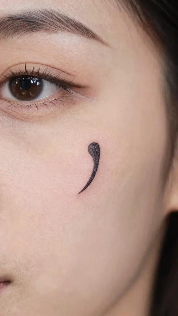 The semicolon is a powerful symbol of mental health awareness and resilience. A small semicolon tattoo can signify strength through struggles and a commitment to moving forward. These discreet tattoos can be placed near the side of your eye or along your brow, carrying a meaningful message.