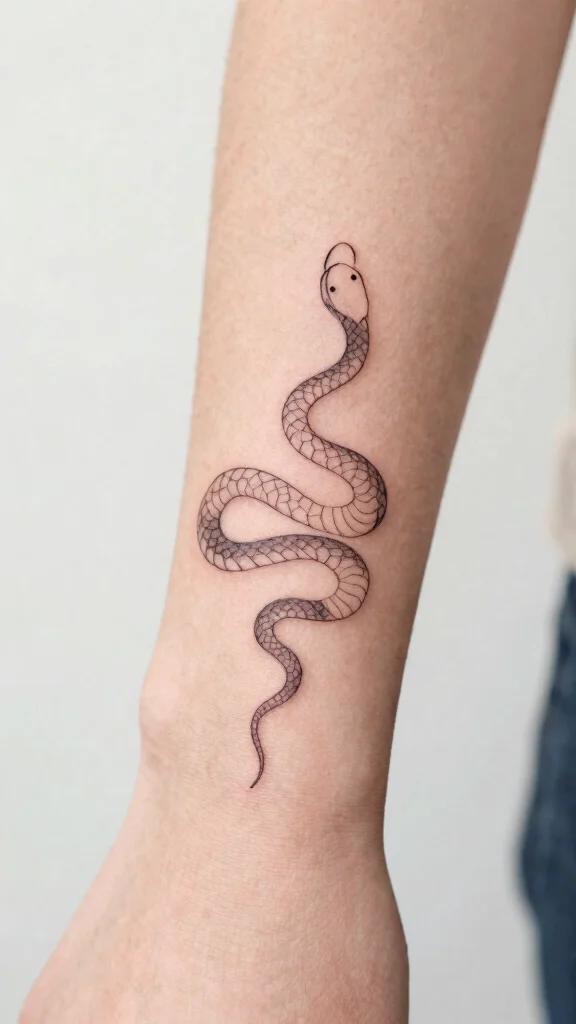 Popular spots for a subtle vibe include the inner wrist, forearm, collarbone, behind the ear, and ankle. These areas let the lines breathe and stay legible in subtle snake ink over time. Consider your activity level and work dress code—e.g., wrist or behind-the-ear for lower visibility, forearm for easier coverage. For tiny snake tattoos, the ankle or behind the ear often keeps the line work discreet while still being beautiful. Always chat with your tattooist about line thickness and spacing to keep your snake tattoo designs readable as you age.