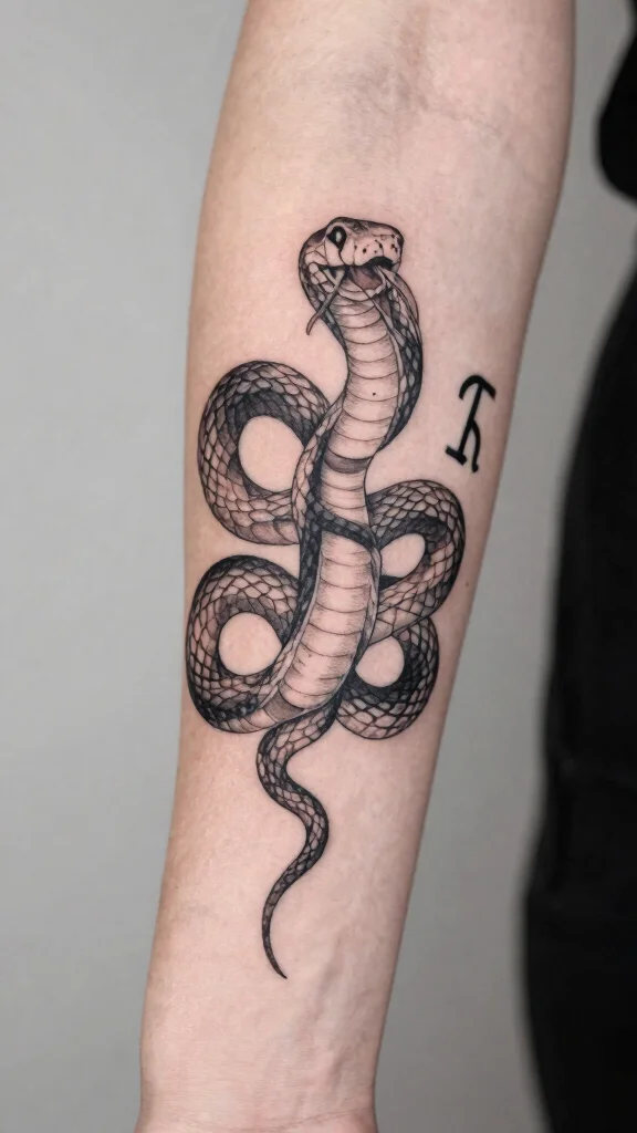 This custom design works well on the wrist, forearm, or ankle, serving as a constant reminder of your journey. The blend of a snake with a personal symbol creates a unique story.