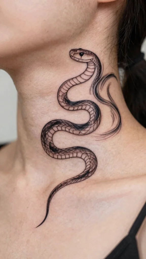 This style captures the snake’s form while adding an abstract flair that feels fresh and artistic. Ideal placements include the forearm, shoulder, or back of the neck, depending on how visible you want it.
