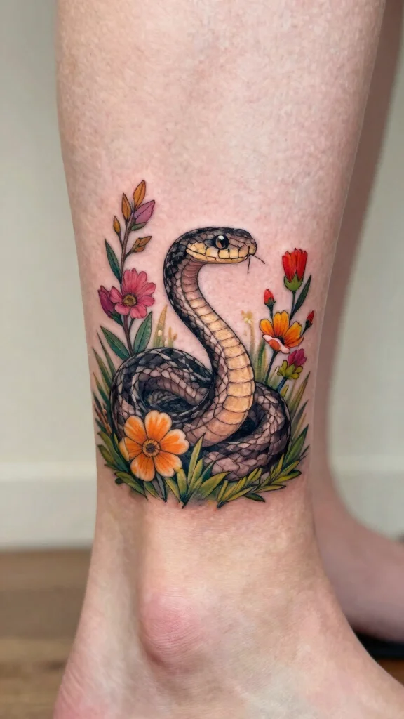 Opting for a little snake in a garden tattoo allows you to celebrate your journey and connection to the natural world.