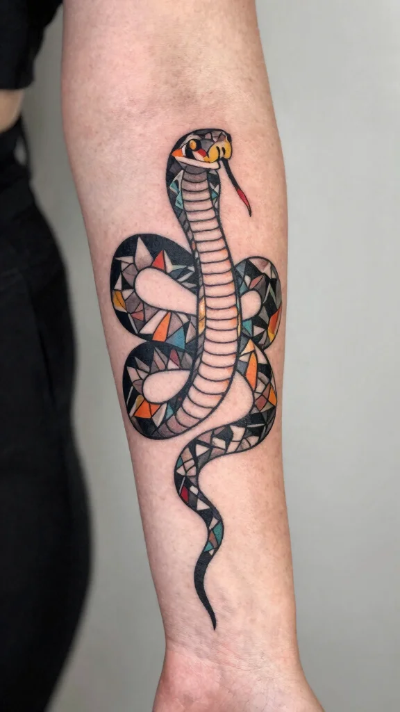 If you favor artistic styles, a geometric snake tattoo symbolizes your journey through a modern lens, reflecting both nature and creativity.